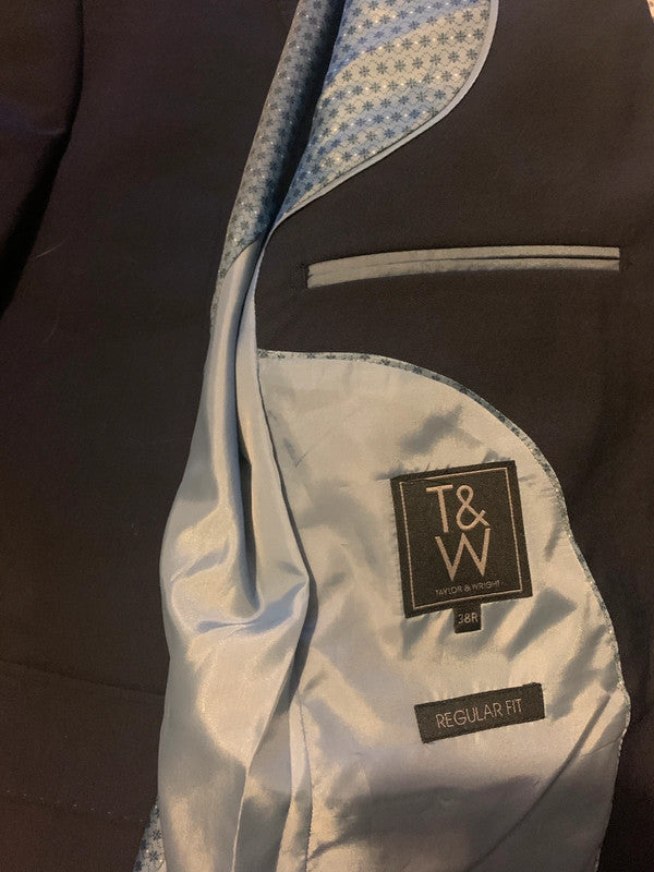 Vintage Taylor & Wright Navy Blue Suit Jacket 38R Regular Fit